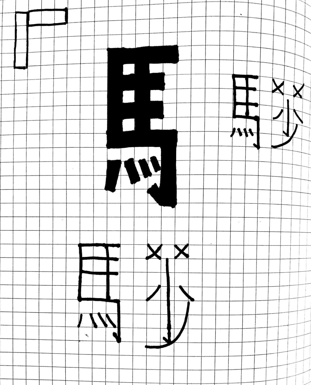 Simply I worked on a grid paper roughly first so that it would make me easier to write or design the characters. Basically, I tried three possibilities on the translated characters quickly, generally, I think the one worked with geometric shape(rectangle) match with the English logo quite well. Hence, I will development more by this characteristic.